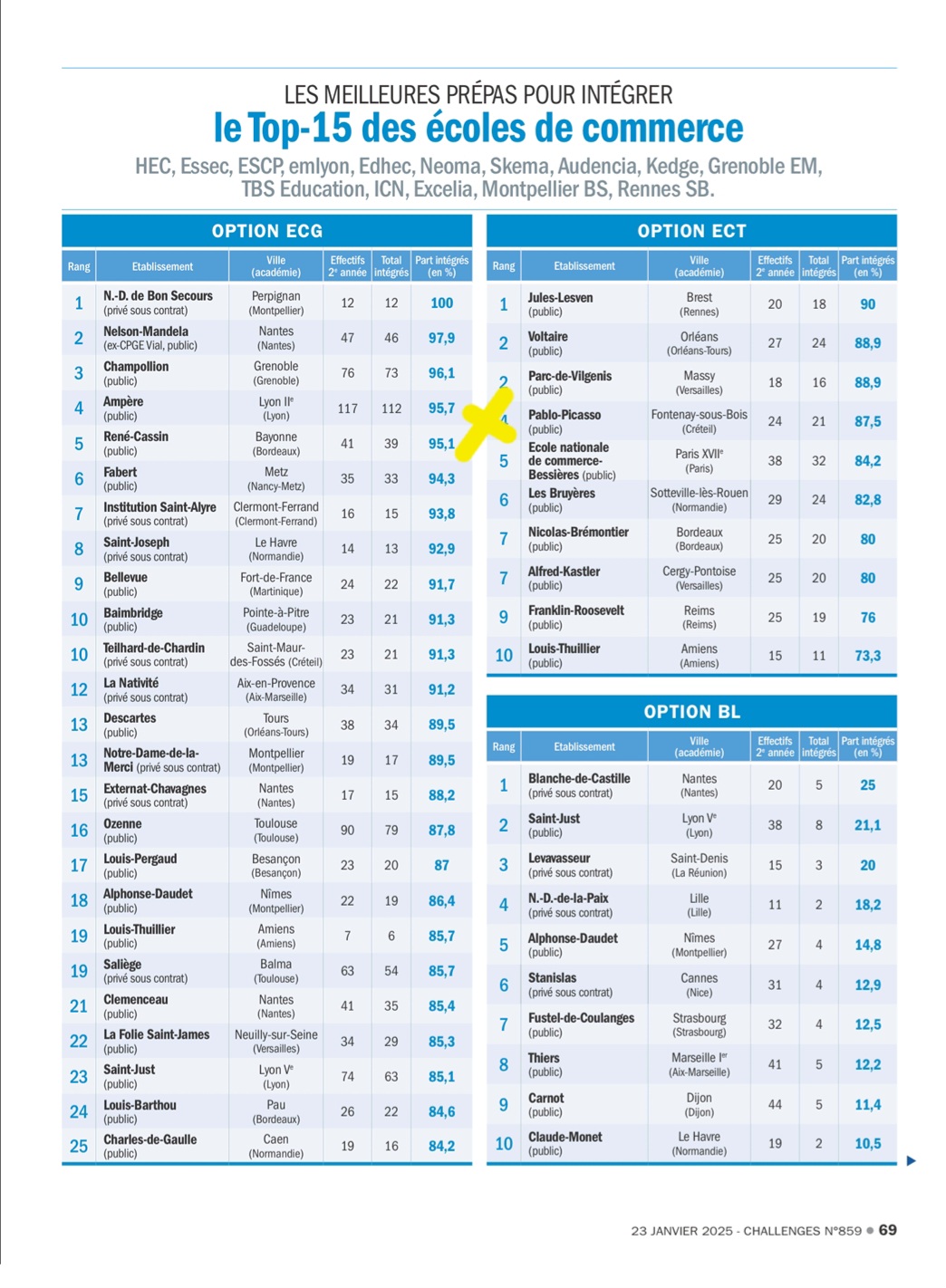 Choisir la prépa ECT Picasso, choisir la voie de la réussite ! cf. Palmarès des prépa ECT de France selon challenges février 2024.